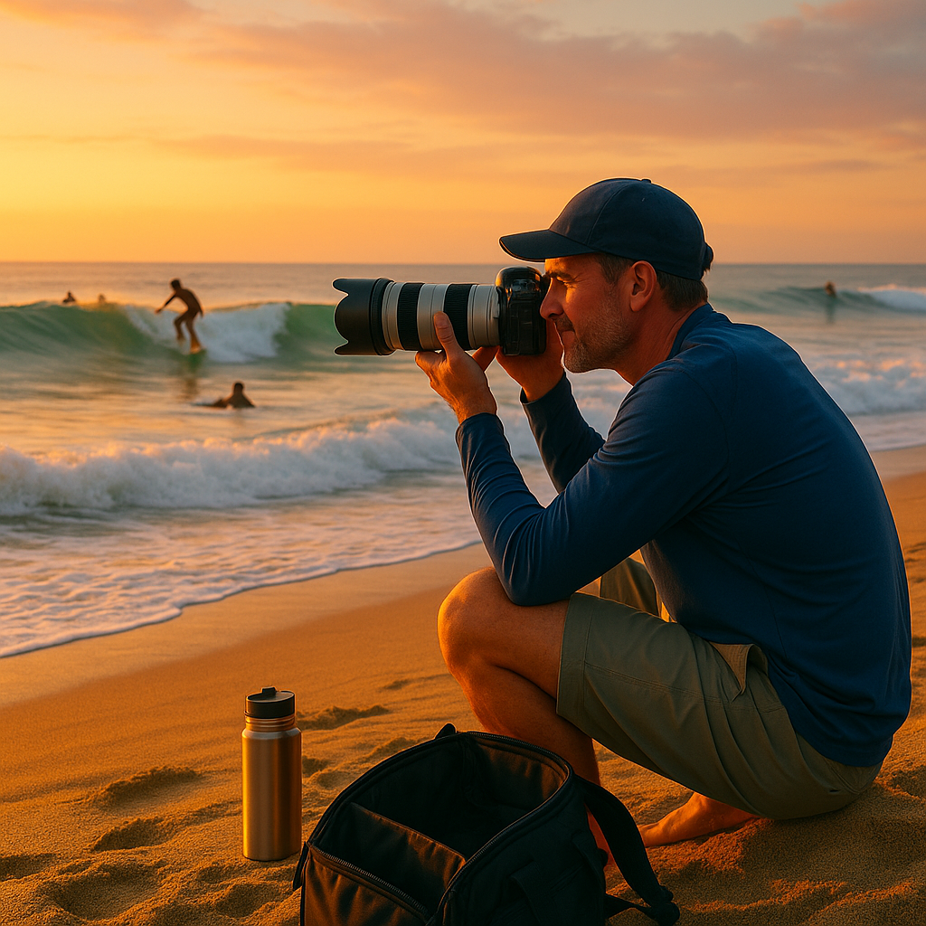 Esse é clássico! Geralmente munido de uma câmera DSLR de entrada ou até mesmo um bom smartphone, o Entusiasta de Fim de Semana está ali para registrar os amigos, os filhos, ou simplesmente a vibe do surf. A fotografia é um hobby, uma forma de participar da experiência. Eles podem não ter a lente mais cara ou a técnica mais apurada, mas a paixão e a alegria em cada clique são contagiantes. Focam mais no momento e menos na perfeição técnica, buscando aquela foto que vai direto pro grupo da família ou pro feed pessoal. Muitos deles começam a levar mais a sério depois de ver a evolução das suas próprias fotos.